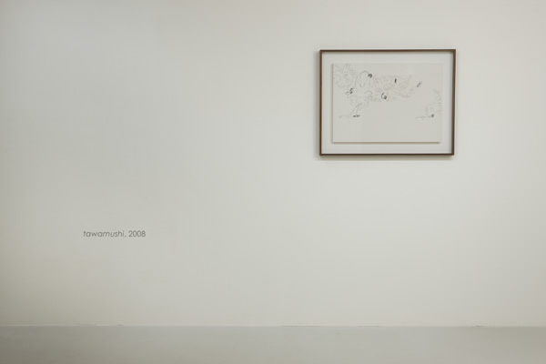 601Artspace is pleased to present a large-scale video installation, dolefullhouse (2007), by the Japanese artist Tabaimo, along with a selection of drawings from her Tawamushi (2008) series. Utilizing sophisticated computer animation technology, thousands of drawings, and a palette that refers to the tradition of Japanese woodblock prints, Tabaimo's video installations, including dolefullhouse, are presented within and upon a constructed space that creates a sense of physical or psychological intimacy. As a viewer, one is enclosed in the space itself, and placed temporarily in an intimacy of subject matter: engagement and detachment play against one another within the implied story of dolefullhouse, and in its means of execution which, in addition to printmaking, draws upon manga and anime. About this work, Tabaimo says, " I want to create layers of worlds."